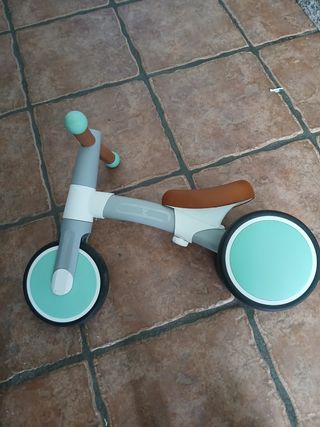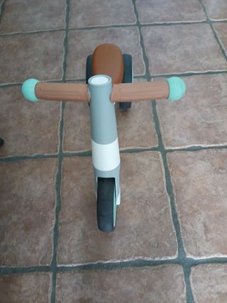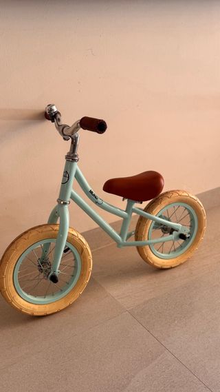 Preciosa bicicleta sin pedales para niñ@s. Está en muy buen estado y lista para usar. - Triciclo de madera y plástico. - Asiento acolchado marrón. - Ruedas de color verde menta. - Manillar de madera.