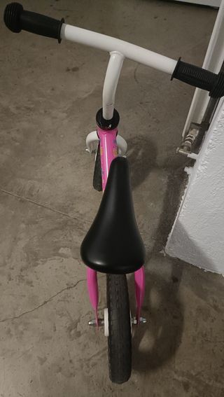 Preciosa bicicleta sin pedales para niñ@s. Está en muy buen estado y lista para usar. - Color rosa y blanco. - Asiento negro acolchado. - Ruedas de goma.