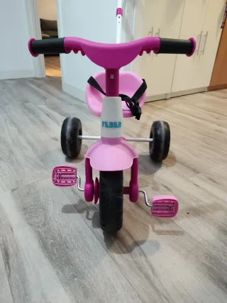 Triciclo infantil de color rosa con tres ruedas, ideal para los más pequeños. - Manillar con puños marrones. - Asiento acolchado. - Ruedas blancas. Las ruedas de atras se pueden hacer una Tambien tengo los pedales