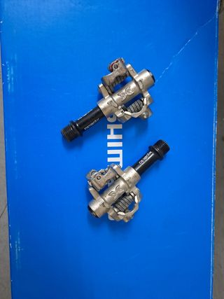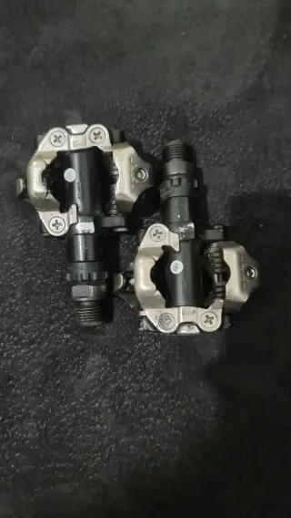 Pedales de bicicleta de montaña en buen estado. Se aprecian algunos signos de uso, pero en realidad se han usado poco. - Marca: Shimano - Tipo: MTB - Estado: Usados
