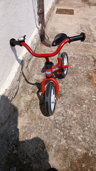 Bicicleta infantil sin pedales CHICCO RED BULLET. Color rojo, con uso pero con kilómetros de vida por delante. Mira el resto de mis artículos para bebe y niño, si te llevas varios podemos negociar un poco los precios.