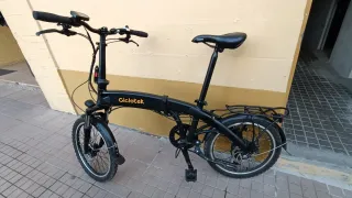 Se vende Bicicleta eléctrica plegable marca ciclotek, con muy poco uso, Motor: Trasero, 250 vatios, bruhsless, sin escobillas ni mantenimiento Pantalla Con acelerador integrado. 5 niveles de asistencia, alta visibilidad. Acelerador de gatillo incorporado (limitado por software a 6 km/h, para ayuda en salidas) Batería: 7,8 Ah. . (280 vatios/hora). Autonomía estimada: 55 km. aprox.* Velocidad máxima: 25 km/h Peso: 20 kg Freno: Disco mecánico (delantero y trasero) Pedales fácilmente plegables. Color: negra Se venden por no usar, precio nueva 1200