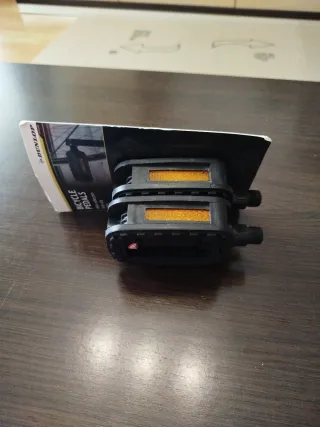 Pedales de bicicleta de la marca Dunlop. - Color negro con detalles naranjas reflectantes. - Fabricados en plástico resistente.