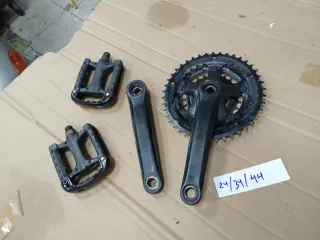 Pedales, eje y platos de bicicleta