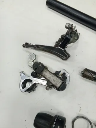 Conjunto de piezas para bicicleta. - Desviador delantero Shimano SIS. - Manetas de freno. - Pedales. - Sillín de bicicleta. Todo lo de la foto por solo 5€