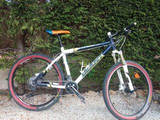 Bicicleta de Montaña MTB Giant 840 ATX de aluminio con suspensión delantera First AirRL, freno de disco Shimano en rueda delantera y trasera, bielas SLX, pedales Shimano, sillín de gel anticompresión Orbea, cambios Shimano SLX, desviador Sram X7, ruedas Gaex Saguaro de 26 pulgadas. Talla M