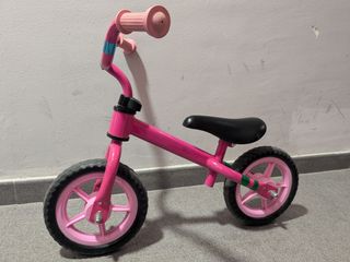Dos bicicletas sin pedales para niños, en color rosa. Están en buen estado, aunque muestran algunas señales de uso. Precio por las dos - Ideales para que los más pequeños aprendan a mantener el equilibrio. - Diseño ligero y fácil de manejar. - Color rosa.