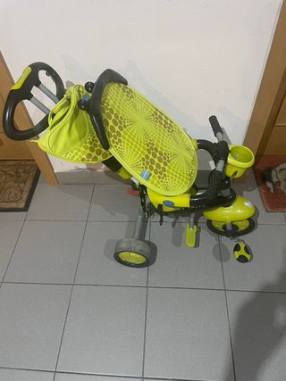 Vendo triciclo Smart Trike en buen estado. Es de color verde lima y tiene un diseño moderno. - Incluye capota. - Bolso portaobjetos. - Pedales. - Reposapiés.