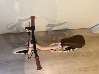 Preciosa bicicleta sin pedales para niñ@s, ideal para desarrollar el equilibrio y la coordinación. Es de color azul celeste y tiene detalles en rosa Bicicleta infantil sin pedales Decathlon B-Twin Runride 500 Altura asiento regulable Con freno trasero de tambor. La sirga del freno está algo deteriorada pero no afecta al funcionamiento Funciona perfectamente Fácil de transportar, para camping, vacaciones, aegunda residencia, ...