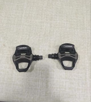 Pedales Shimano SPD-SL usados, en buen estado. Incluyen dos pedales y dos calas. Ideales para ciclismo de carretera. - Funcionamiento fluido. - Diseño ligero y resistente. - Fácil instalación.