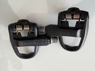 Pedales automáticos Campagnolo usados. Son dos pedales en buen estado, aunque muestran señales normales de uso. - Marca: Campagnolo - Tipo: Automáticos - Cantidad: 2