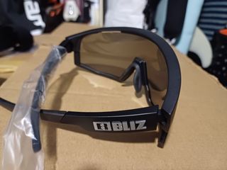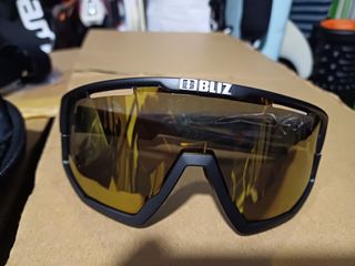 Gafas de ciclismo Blitz. Ideales para proteger tus ojos mientras pedaleas. - Montura negra mate. - Lentes de color ámbar. - Diseño deportivo y envolvente.