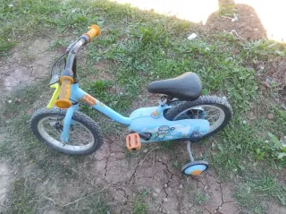 Bicicleta infantil de color azul, ideal para los más pequeños. Se vende por falta de uso. - Ruedas de 14 pulgadas. - Incluye ruedines. - Marca Ridgeyard. Ojo le falta un pedal