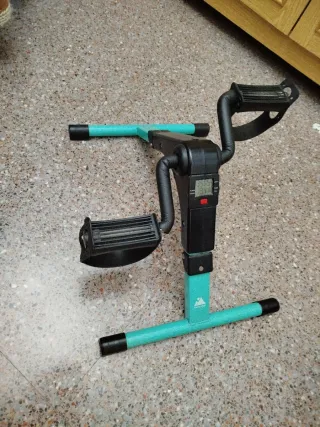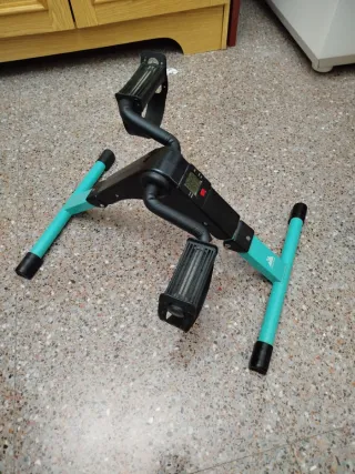 Pedales compactos para ejercitar piernas y brazos en casa. Ideales para mantener la actividad física. - Estructura metálica en color turquesa. - Pantalla digital para seguimiento de ejercicio. - Pedales con correas de sujeción.
