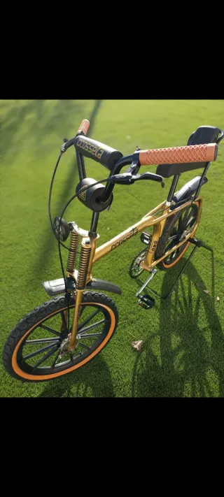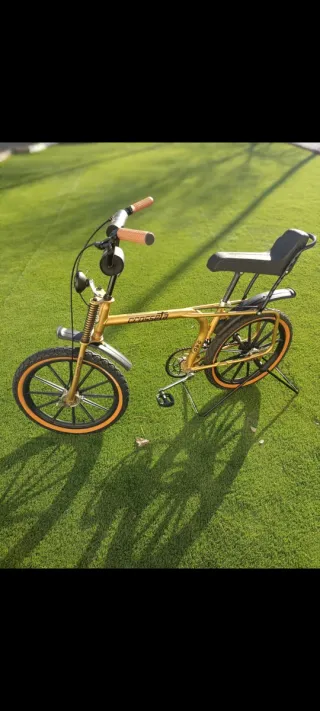 Bicicleta clásica Crosseta G.A.C restaurada en color dorado. Un modelo icónico con un diseño retro. - Ideal para coleccionistas, exposición, decoración... - Se entrega otro par de llantas, pedales color marrón, caballete y algunas piezas originales más. Motoretta, Bicicross, BH, Torrot, Akimoto, California, Panther...