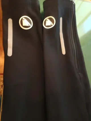 Perneras térmicas Endura Thermolite en color negro. Ideales para mantener la temperatura en climas fríos. Con uso, pero en buen estado de tela y cremalleras - Tejido Thermolite. - Diseño ergonómico. - Logo de Endura en la parte inferior desgastado Cremalleras en perfecto estado