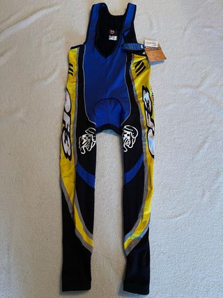 Culote o pantalón largo de invierno de ciclismo OF3 con un diseño llamativo Bicicleta mtb carretera etc Nuevo con etiquetas en talla M tengo otro mas y en talla L 2 mas costaba 77,60€ , coolmax , super roubaix y pegatina of3 , fabricado en España 80% poliamida 20% lycra - Tejido principal azul en la parte superior. - Paneles laterales amarillos con detalles en negro y gris, azul - Estampado gráfico en las perneras. - Tirantes negros. pinarello campagnolo Record Shimano gobik sidi ritchey nalini santini castelli vittoria etxeondo nostra oakley poc scott specialized colnago cervelo look sportful