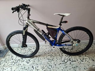 Bicicleta de cuadro semirrígido, muy ligero, con suspensión delantera de tipo "seco". 26" Totalmente revisada, centrada y equilibrada. Frenos, cables y cambiadores nuevos a estrenar..pata de cabra. Engrasada y lista para esos ratos libres, válida tanto para cuidad, cómo grava y caminos. Madrid-Sur