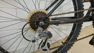 Bicicleta con componentes Shimano. - Rueda trasera con piñones. - Cambio trasero. - Cadena. un freno no funciona
