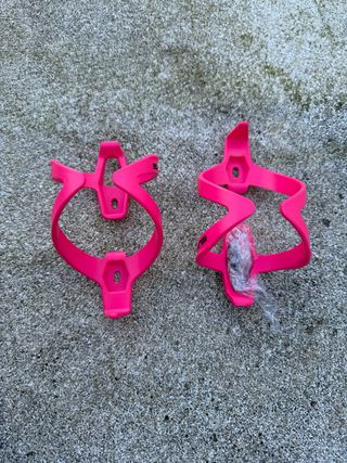Set de dos portabidones de agua en color rosa. - Diseño ligero y resistente. - Ideal para bicicletas.