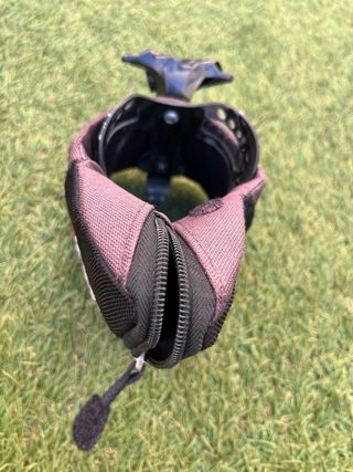 Porta bidón de diseño aerodinámico. - Material textil resistente. - Cierre de cremallera. - Soporte de plástico negro.