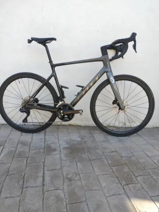 Bicicleta de carretera Scott Addict 20 en talla L, a estrenar. - Cuadro y horquilla de carbono. - Frenos de disco hidráulicos. - Transmisión Shimano 105 Di2 electrónico. Bici en garantía, bielas compact Comprada de agosto 2024. 1500 kilómetros, Se vende según viene de origen, salvo el manillar de carbono plano Bianchi que va incluido. Las ruedas no se han usado nunca, y el sillín tampoco. Se incluyen pedales Keo carbon muy ligeros y porta bidones ligeros. Está nueva, se puede ver sin compromiso. Posibilidad de vender con ruedas bontrager aeolus 35 de carbono negociando el precio. La bici está impecable. No contesto a oferta ridícul