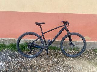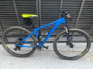 Bicicleta de montaña con ruedas de 27.5 pulgadas. - Cuadro de aluminio ligero. -Ruedas recién cambiadas. -Freno de disco. -Pastillas de freno recién cambiadas. -Pedales de metal con algún roce. -Bielas y cambio sram. -Cambios 3x8 -Sillín de competicion. -Porta bidones. -Suspensión delantera RockShox