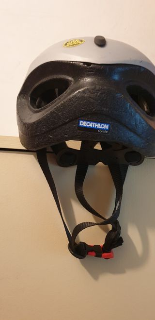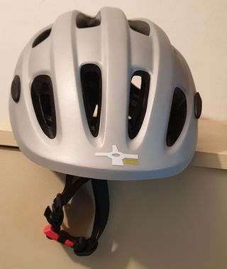 Casco de bicicleta en color gris, ideal para protegerte en tus salidas. - Diseño con ventilación. - Correa ajustable con cierre de seguridad. - Logo de la marca en la parte frontal.
