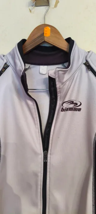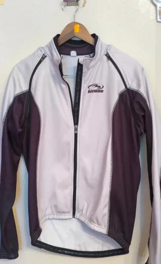 Chaqueta de ciclismo vintage marca Biemme con diseño bicolor. Talla XL - Mangas y paneles laterales en color morado oscuro. - Cuerpo principal en color blanco roto. - Cremallera frontal completa. - Cuello alto.