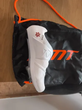 Zapatillas de ciclismo DMT KR0 en color blanco neutro. Diseñadas para ofrecer comodidad y rendimiento. - Cierre BOA. - Suela de carbono. - Parte superior de malla transpirable. - Calas look - Talla 43 Las he usado 3 veces