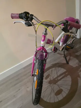 Bicicleta infantil en buen estado, ideal para niñas. - Color blanco con detalles en rosa. - Sillín y puños rosas. - Ruedines incluidos.