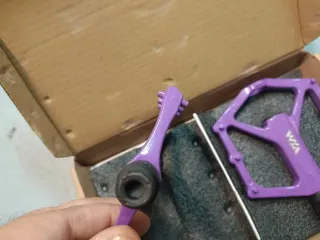 Set de dos pedales de plataforma para bicicleta en color morado. - Diseño moderno y resistente. - Acabado en aluminio. - Ideales para MTB o BMX.