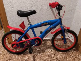 Bicicleta infantil con temática de Spiderman, ideal para los más pequeños. - Ruedas de 16 pulgadas. - Diseño en color azul y rojo. - Incluye guardabarros delantero y trasero. - Asiento y manillar ajustables. No tiene apenas uso,solo entrega en mano