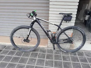 Bicicleta de montaña con cuadro de carbono en talla M. - Cuadro de carbono. - Talla M. - Ruedas de 29 pulgadas. - Frenos de disco. - Horquilla RockShox RS1 - Transmisión Shimano.
