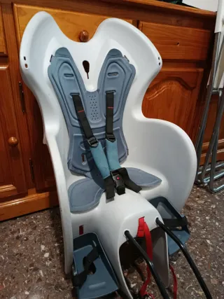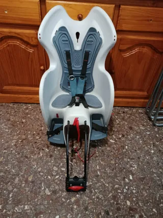 Silla de seguridad para transportar niños en bicicleta de Decathlon.Diseñada para ofrecer comodidad y protección. - Asiento acolchado. - Arnés de seguridad de 3 puntos. - Reposapiés ajustables. - Estructura de plástico resistente.