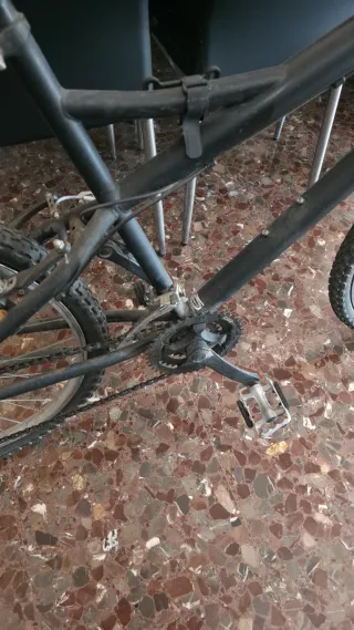Bicicleta de color negro. - Ruedas para cambiar por no uso, al igual que frenos, sillin y cambios. No se usa hace años, por eso el precio.