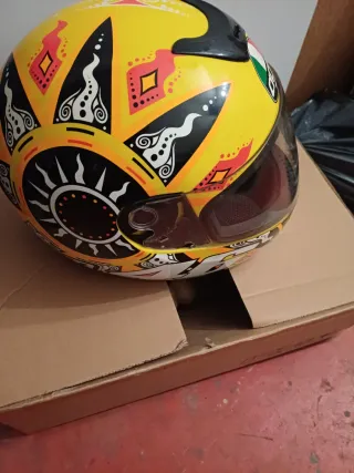 Casco de moto AGV con un llamativo diseño amarillo. - Talla S. - Visera oscura. - Logo de AGV en los laterales.