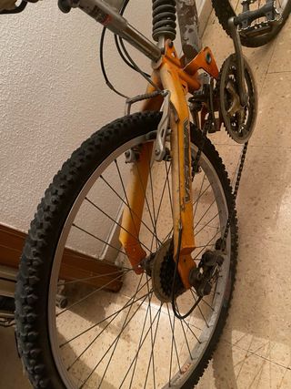 Vendo bicicleta B-Pro de montaña, talla S, con ruedas 27,5 con los radios naranjas. Ha sido usada, pero funciona perfectamente.✔️ Talla S (ideal aprox. 155–170 cm) ✔️ Ruedas 27,5” ✔️ Suspensión delantera que le falta un poco de mantenimiento pero funciona ✔️ Frenos en V✔️ Cambios en buen estado ✔️ Ideal para ciudad, caminos y pistas Tiene marcas normales de uso, nada que afecte al funcionamiento. Siempre guardada en garaje. 📍 Entrega en mano 💸 Precio: 150 ligeramente negociable