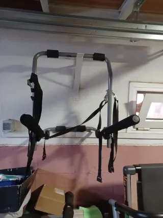 Portabicicletas para coche en condiciones aceptables. Ideal para transportar tus bicicletas de forma segura. - Estructura metálica. - Correas de sujeción incluidas.