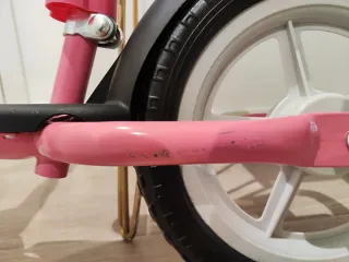 Bicicleta de equilibrio en color rosa, ideal para los más pequeños Tiene muy poco uso pero tiene unas rozaduras a ambos lados.