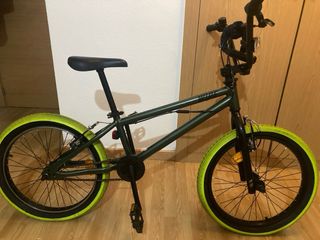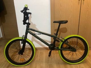 Bicicleta tipo BMX WIDE de 20”, ideal para niños o adolescentes. Cuadro de acero resistente,candado de seguridad, monomarcha, frenos V-brake delante y detrás. Muy buen estado general, siempre guardada en interior. Ruedas con neumáticos verdes llamativos, sillín y puños en buen estado. Funciona perfectamente, lista para usar. Precio negociable dentro de lo razonable.