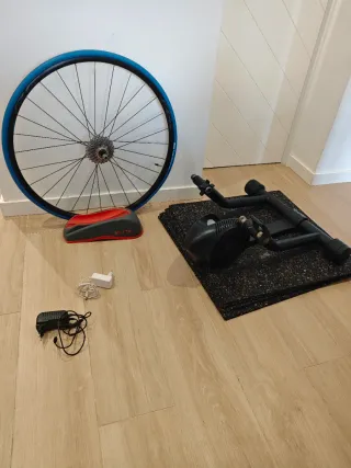Rodillo inteligente Bkool Smart Pro 2 en perfectas condiciones y actualizado. * En el precio incluyo: - Rodillo Bkool Smart Pro 2 - Pasante de acero bkool. - Soporte rueda delantera bkool. - Cable de conexión (por supuesto). - Rueda trasera montada con cassette Shimano 11V y cubierta especial para rodillo Elite Coperton. *Características: - Potencia: 1200W - Simula pendientes de hasta el 20% - Ruido: 68dB - Patas telescópicas para mayor estabilidad - Peso: 12KG -Conexión: ANT+ *No incluye: - Receptor USB ANT+ (Nunca lo he necesitado) - Manual de instrucciones *Razón de la venta: Adquirido rodillo categoría superior