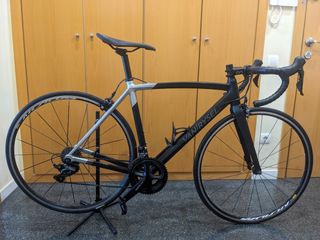 Bicicleta Specialized Aethos Sport en color gris (Talla 54). La bicicleta está impoluta nunca ha salido es la que utilizo solo para los rodillos por esa está montada. Se compro menos de 6 meses, utilizada muy poco tendrá menos de 500 kilómetros en rodillo. - Cuadro de carbono - Frenos de disco - Transmisión Shimano 105 ¡La bicicleta se entrega con lo que trae de fabrica, todo los soportes garmin, los clips y el sillín con la bolsa no se venden con la bicicleta!!