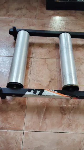 Rodillo de rulos para entrenamiento de ciclismo.Estrictura super solida y patas de goma funciona perfectamente.Los 3 rulos y la goma están en perfecto estado ajustable en longitud marca Rodlik - Estructura metálica. - Rodillos de aluminio.