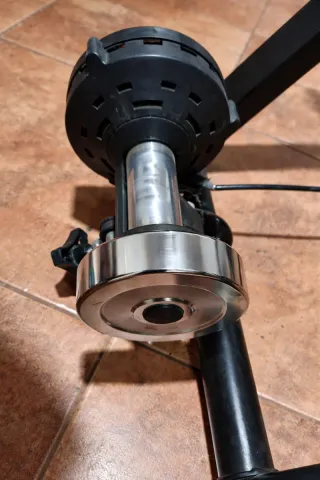 Rodillo de entrenamiento para ciclismo de la marca Tacx. La aspa es adaptada pero funciona perfectamente
