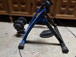 Rodillo de ciclismo Tacx en perfecto estado. - Tres rodillos de color azul. - Estructura negra. - Bandas elásticas de resistencia. Rodillo rulo. Recoger en Manresa. Perfecto para entrenar en casa o calentamiento antes de carreras.