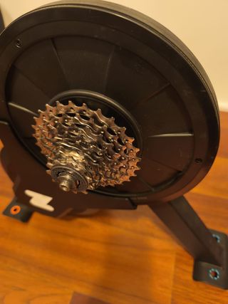 Rodillo interactivo Zwift para entrenamiento utilizado muy poco y con todos los accesorios de origen. - Diseño en color negro. - Incluye cassette y todos los accesorios de origen (tornillería, cable de alimentación, enchufe, potenciómetro, manual de instalación - Logo blanco de la marca visible. - Llaves allen de regalo
