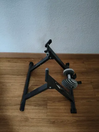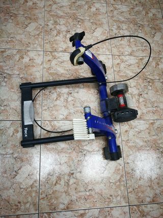 Rodillo de entrenamiento para bicicleta de la marca Tacx. - Color azul y negro. - Diseño plegable para fácil almacenamiento. - Muy poco uso.