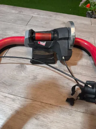 Rodillo para entrenamiento de ciclismo en interiores. Permite mantener la forma física sin salir de casa. - Estructura robusta de color rojo y negro. - Incluye resistencia.