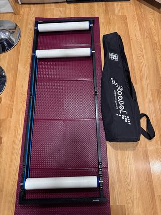 Rodillo Roodol para entrenamiento de ciclismo en interiores. Incluye bolsa de transporte. - Rodillos de alta calidad. - Diseño plegable para fácil almacenamiento. - Bolsa de transporte incluida.